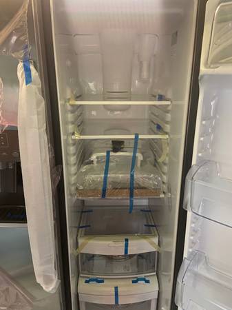 The refrigerator has never been installed or used and works perfectly.