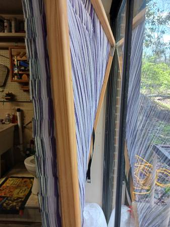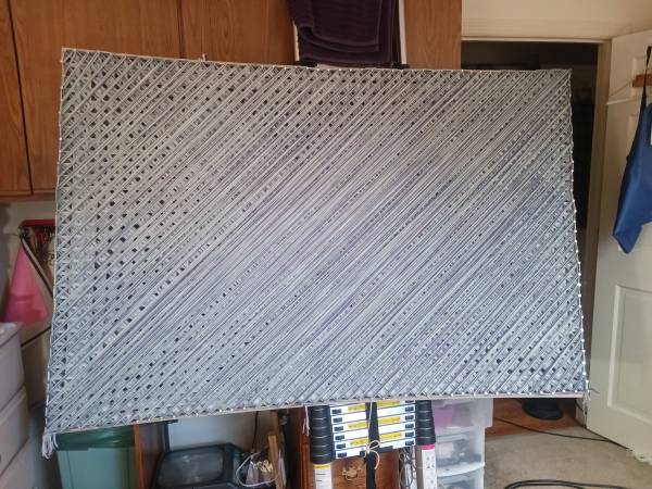 As the pictures show, the frame is warped a bit, but it will be reusable once this project is done. It is around 6X8. I made this for a full size bed blanket.